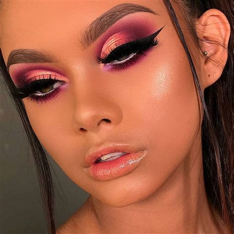 Step into the spotlight with the glamorous makeup style, characterized by bold colors, shimmering highlights, and flawlessly blended contours. Opt for a full-coverage foundation to create a flawless base, then add depth with bronzer and highlighter. Embrace dramatic eyeshadow, winged eyeliner, and voluminous lashes. Finish with a statement lip color for an unforgettable allure.